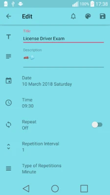 • Periodic reminder feature as minute, hour, day, week, month and year