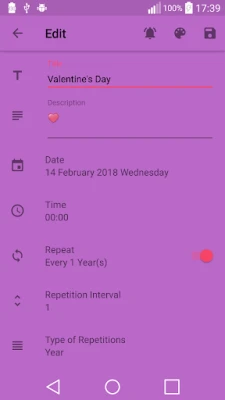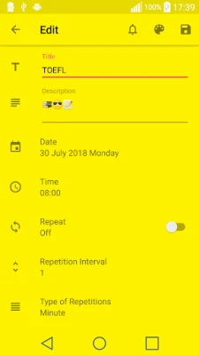 • Periodic reminder feature as minute, hour, day, week, month and year