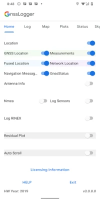 ● Control various data logging such as raw GNSS measurements, GnssStatus, NMEA, navigation messages, sensor data and RINEX logs.