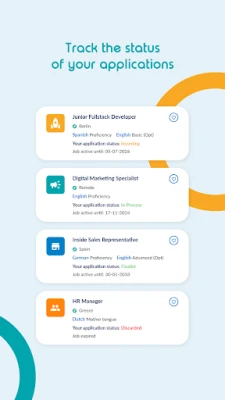 Swipe right to easily apply to job offers you find attractive. Yes, it is as easy as online dating. Swipe left to discard the vacancies you are not interested in. And don’t worry, you can always go to the “Discarded” menu to review them again.