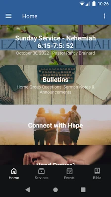 - Watch or listen to past messages - Stay up to date with push notifications - Find out about upcoming events - Contact Hope for prayer requests or general info - Download messages for offline listening