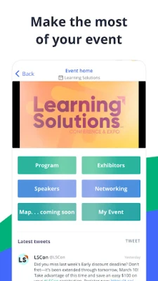 - view schedules, explore sessions, and find networking events - curate your own personal schedule for easy event attendance - easily access location and speaker information - post updates to sessions - interact with other attendees - provide feedback on any sessions attended