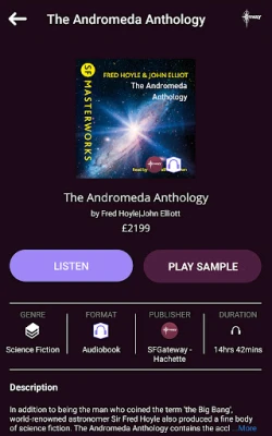 The SF Gateway app is both eBook reader and audio player for all digital content purchased through the SF Gateway website, adding your purchases to the digital bookshelf, showcasing other SF Gateway titles within the Discover area, and enabling a seamless reading or listening experience through the relevant environment.