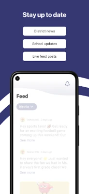 DISTRICT UPDATES In the Live Feed is where you’ll find updates from administration about what’s going on in the district right now. Whether that’s celebrating a student’s success, or reminding you about an upcoming deadline.